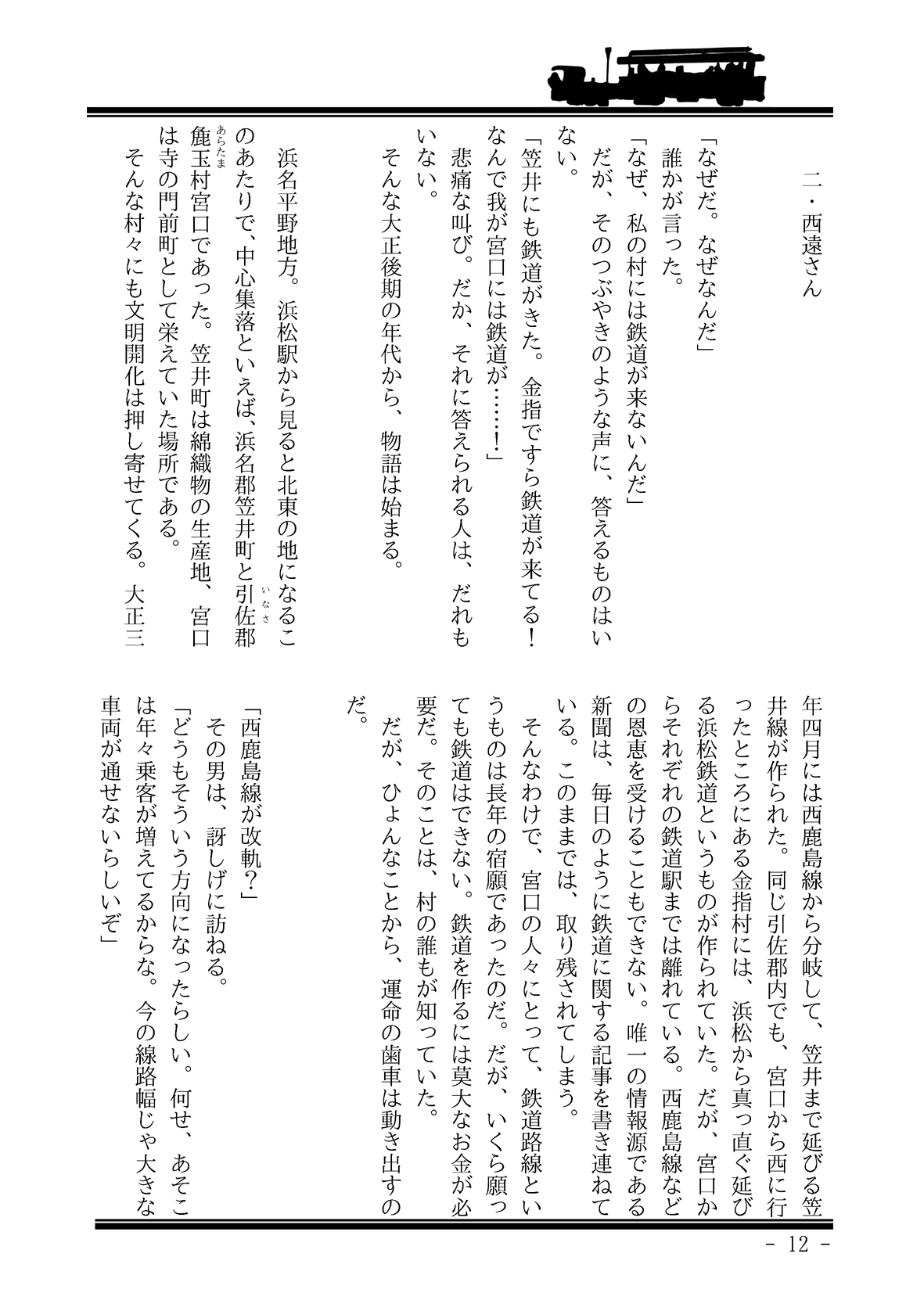 遠鉄西鹿島線中心戦前・戦中編です。小説オンリー。一般向け。